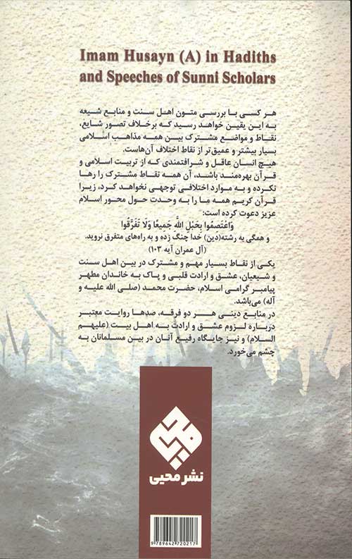 کتاب حاضر در خصوص اربعین و دلایل اهل سنت برای شرکت در اجتماع بینظیر و مقدس اربعین تهیه و نوشتهشده است. مؤلف در این اثر، اربعین حسینی را بزرگترین نماد وحدت و همدلی مسلمانان و غیرمسلمانان برای تشکیل تمدن بزرگ انسانی و حکومت عدل جسمانی معرفی مینماید. تحقیق پیش رو، موضوع امام حسین (علیهالسلام) را در آینه روایات و کلام بزرگان اهل سنت بررسی میکند. نویسنده در کتاب فوق ابتدا گریه پیامبر (ص) و خبر شهادت امام حسین (علیهالسلام) قبل از ولادت اشاره کرده و جزای قاتلین آن امام را در دنیا یادآوری میکند. در ادامه این نوشتار، به فضائل اهلبیت (علیهمالسلام) پرداخته و شخصیت امام حسین (علیهالسلام) از دیدگاه قرآن مورد تحقیق قرار میدهد. نگارنده در پایان این نوشته، سخنان امام حسین (علیهالسلام) به نقل از اهل سنت را ذکر و یادآوری میکند. دلایل اهل سنت برای شرکت در اجتماع مقدس اربعین از مطالب پراهمیت این نوشته محسوب میشود.